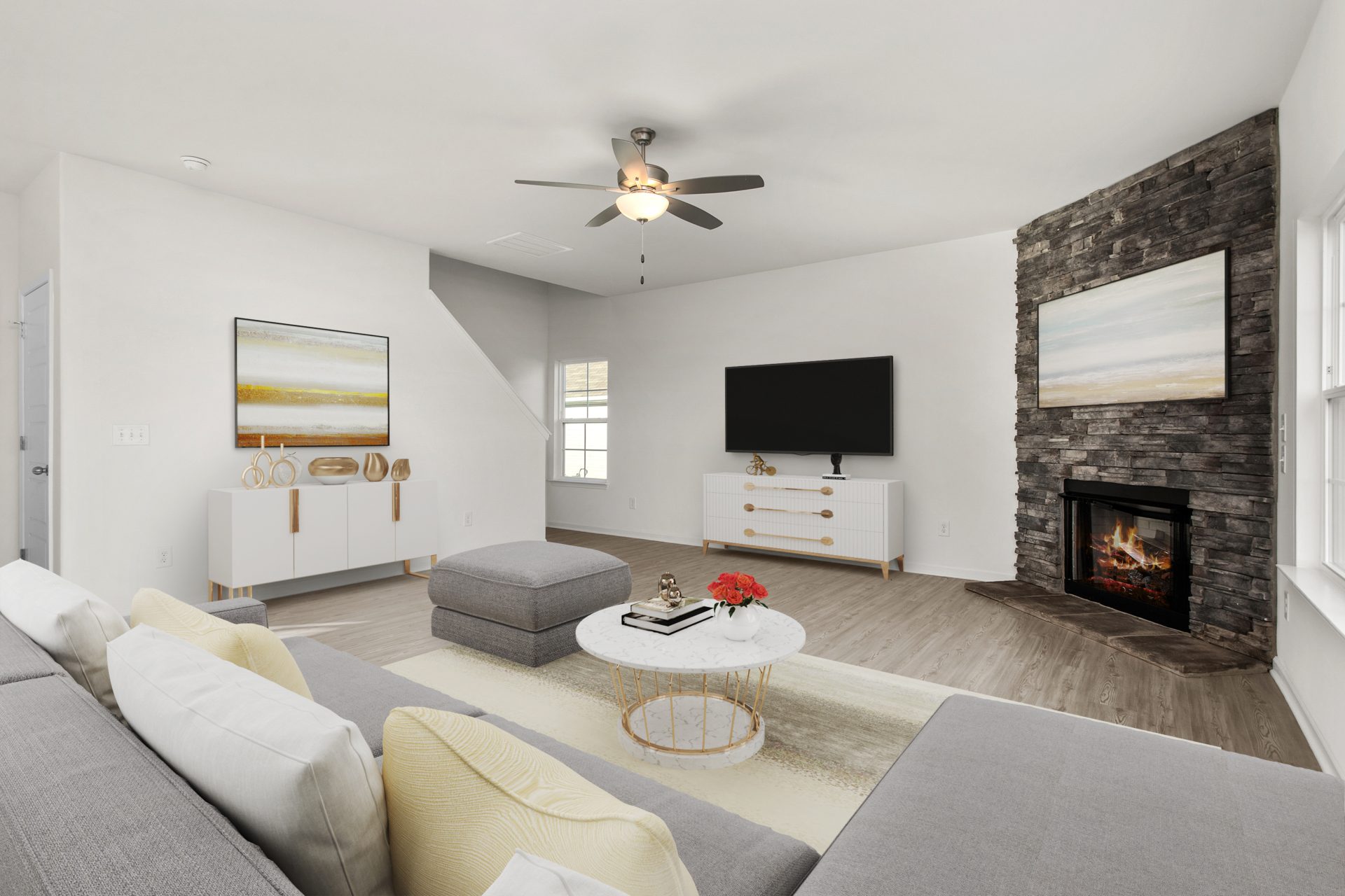 This home has a two-story foyer, which leads into the dining area. Open to the great room and the breakfast area is the fully functional kitchen. The kitchen has plenty of work spaces, even more, when you elect to add the optional island. It also has tons of storage augmented by a large pantry. It also has open access to the formal dining room. The optional chef’s package includes a gas cook top and a hood, a built-in oven with a microwave above. Upstairs the primary suite has a large walk-in closet with an entry to the bedroom, and another walk-in closet accessible from the primary bathroom. The bathroom can be built with a double sink vanity, and either a large walk-in shower and oversized linen closet, or a separate shower and tub. Bedrooms two, three, and four are also located upstairs. Joining them is a second full bathroom and the laundry room. Enjoy the ease of front yard maintenance included in your HOA dues